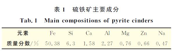 原料取自于安徽某硫酸廠的硫鐵礦燒渣,在105℃的烘箱干燥2h,經球磨機研磨后過75μm孔徑篩分,放入恒溫干燥器中裝袋備用.硫鐵礦燒渣進行消解,并對酸溶液稀釋后,采用ICP-OES測定樣品中多種元素含量。